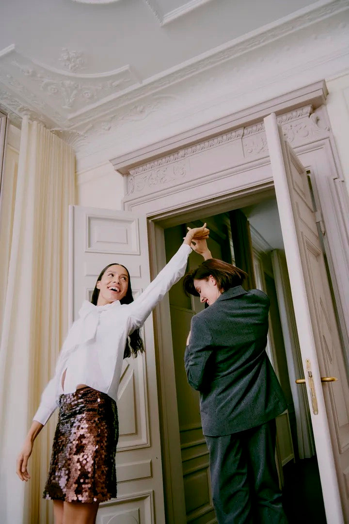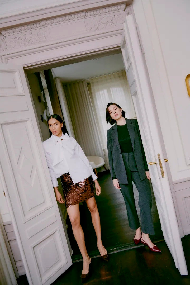 Turn heads with our brown sequin mini skirt — the ultimate blend of glamour and effortless style. Crafted in a rich chocolate hue, this skirt is fully lined for comfort and covered in high-shine sequins that move beautifully with the light. The straight, flattering cut makes it easy to style — pair with a crisp white shirt for chic contrast or a satin cami for evening elegance. Perfect for parties, dinners, and festive events.