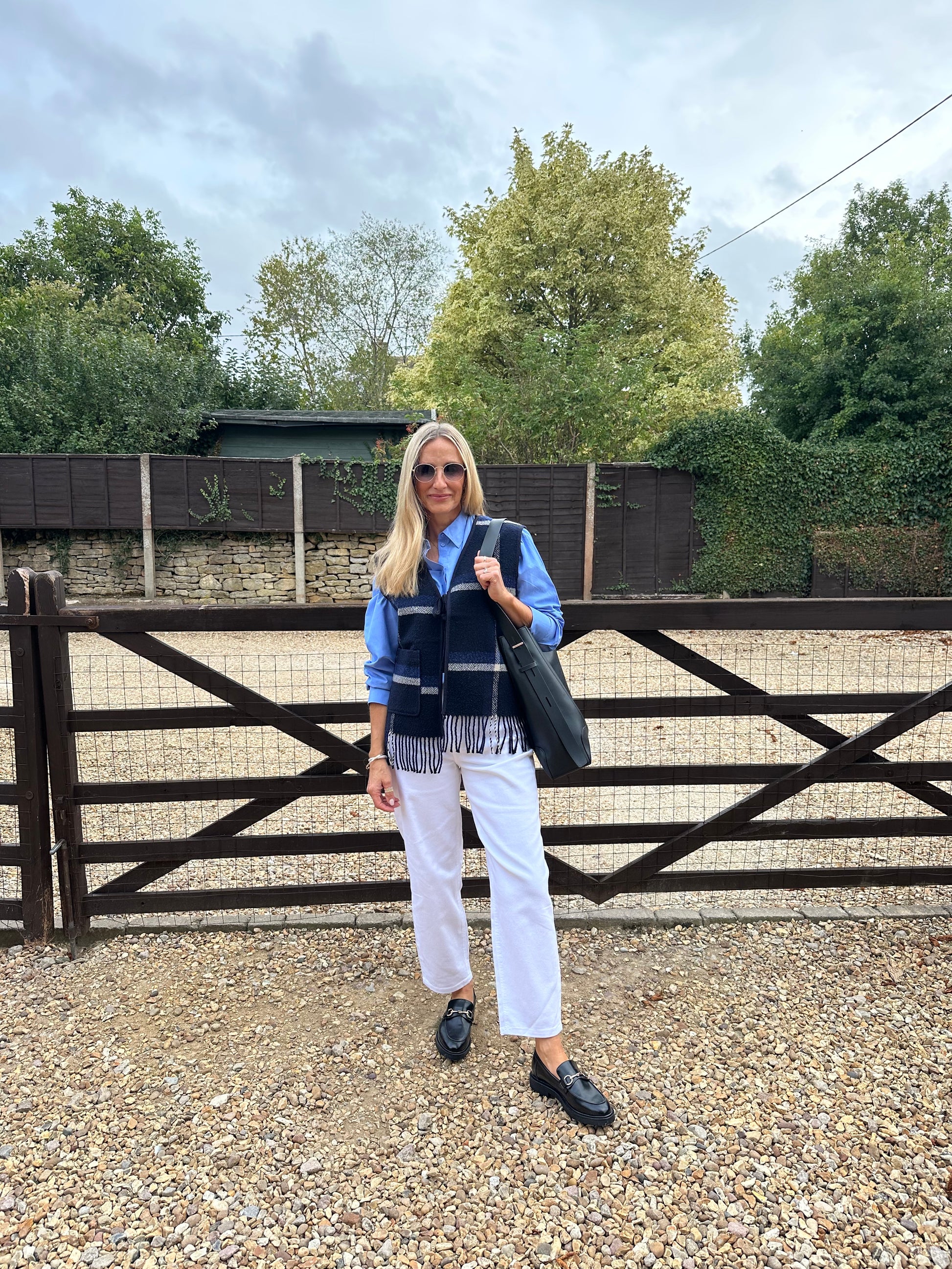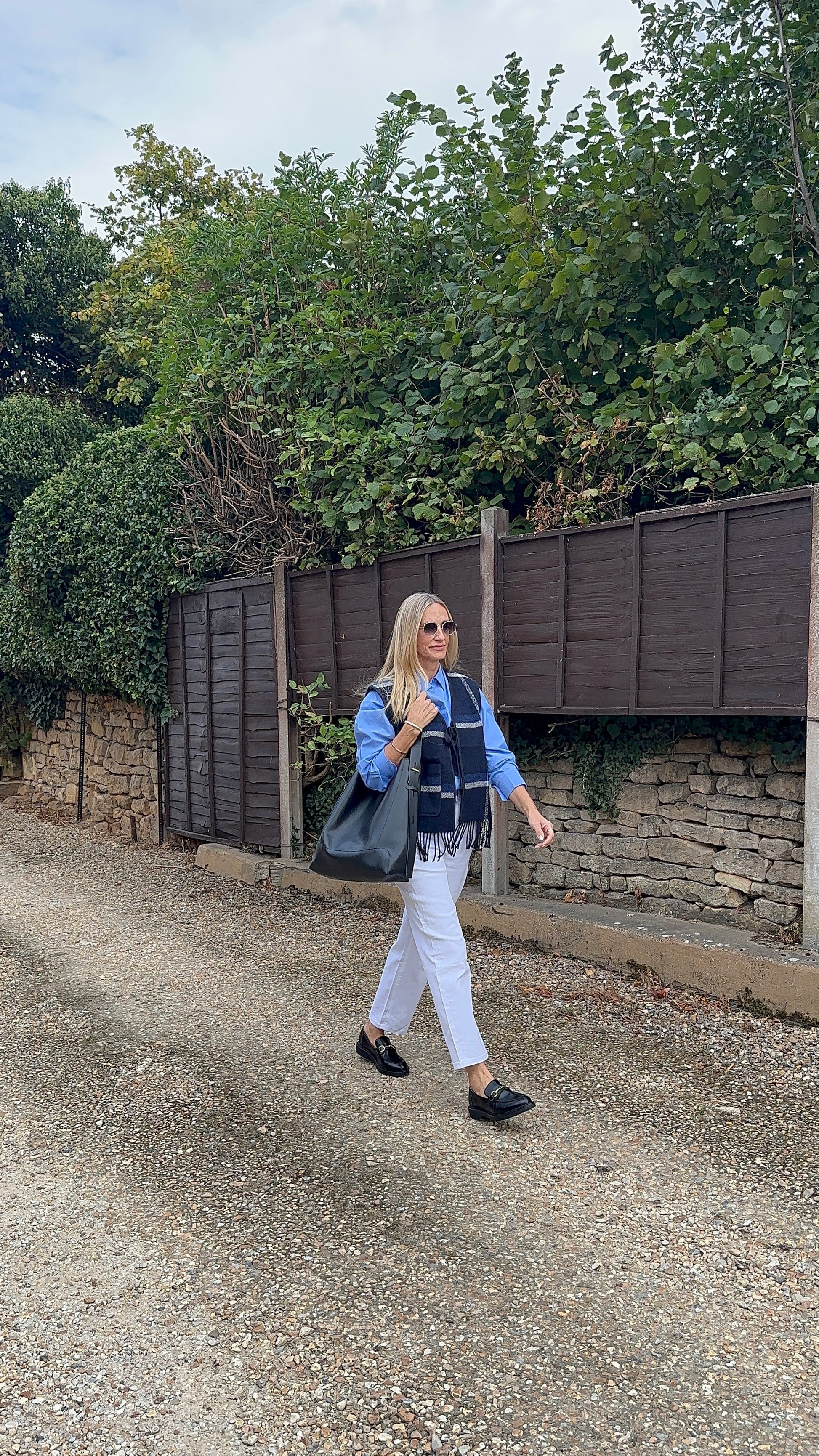 Make a statement with our Navy, Black & Cream Checked Wool Waistcoat, a timeless piece with a modern twist. Crafted from premium fabric for warmth and texture, this waistcoat features a bold checked pattern in versatile hues. The open-front design is secured with delicate ties, while tasseled edges add a bohemian touch. Layer it over one of our "feels like cashmere" round neck jumpers and our winter white cords for effortless, cozy styling—perfect for transitional seasons and beyond
