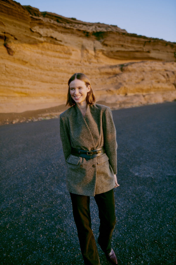 This houndstooth double breasted blazer is a timeless classic, with a modern edge.