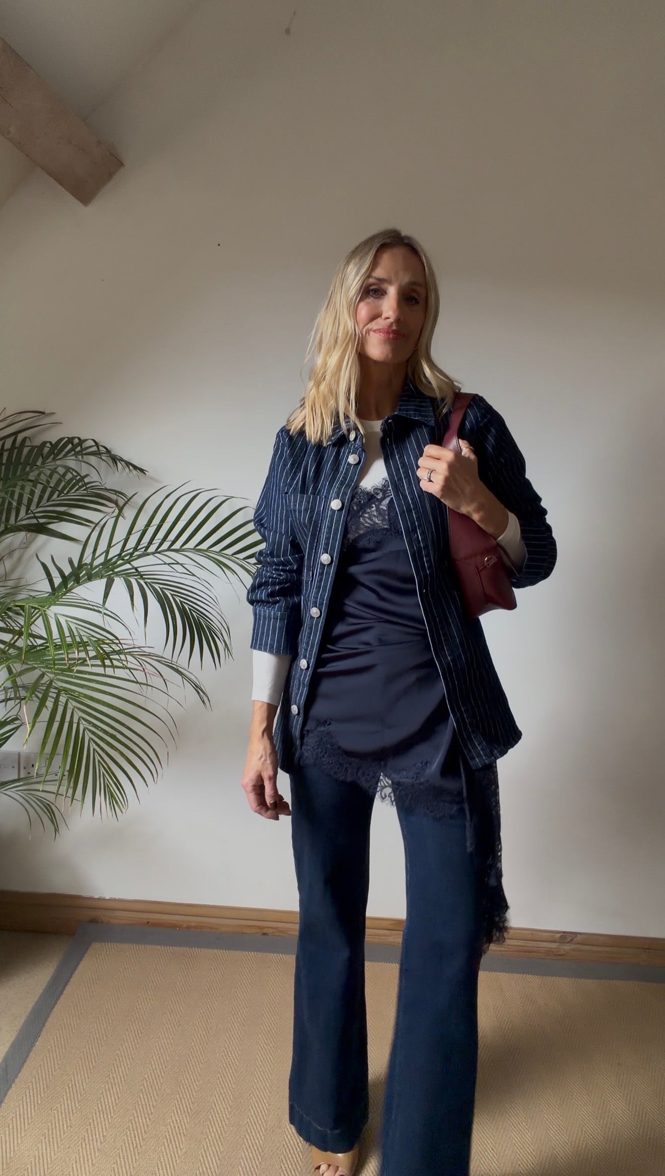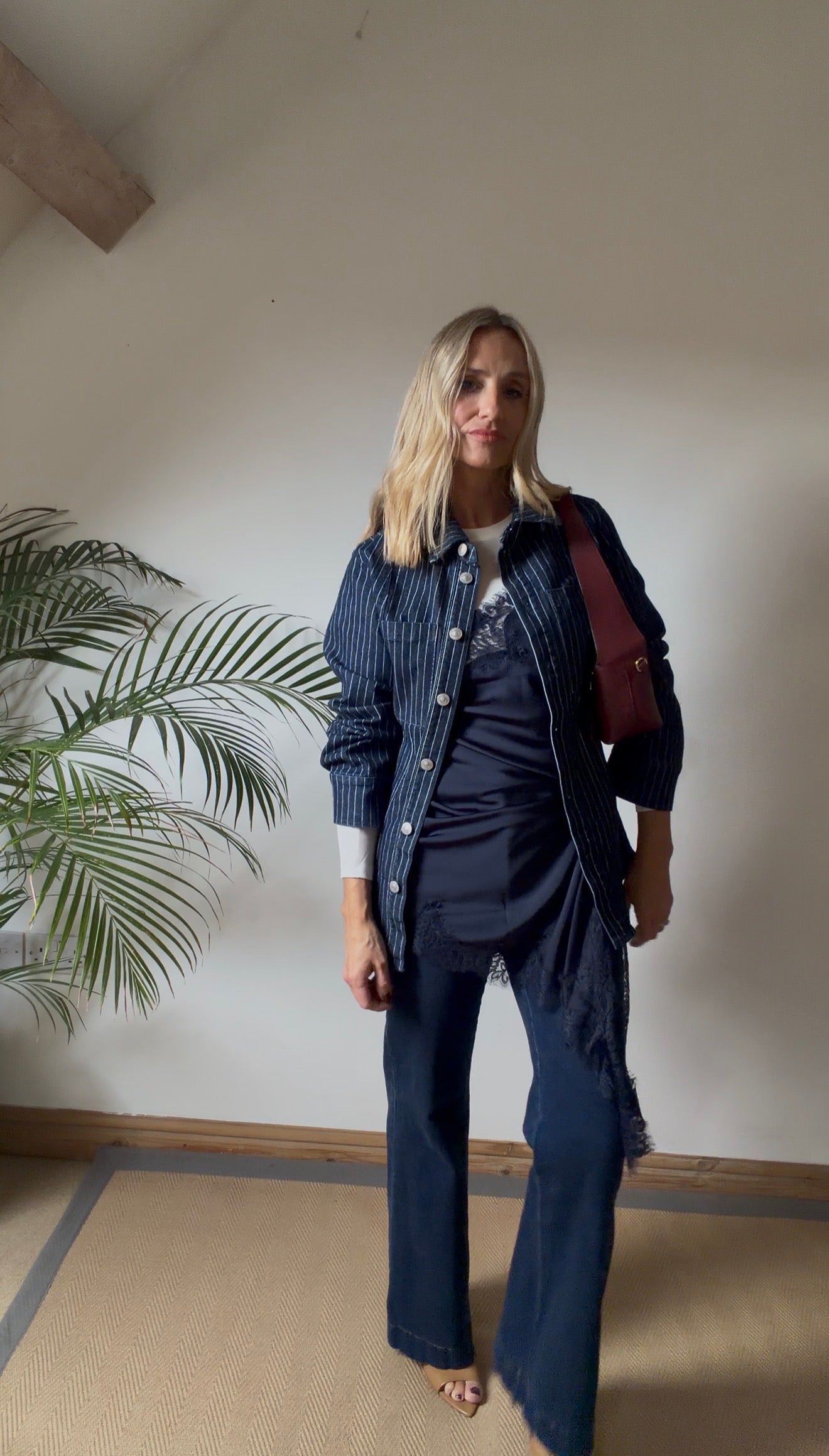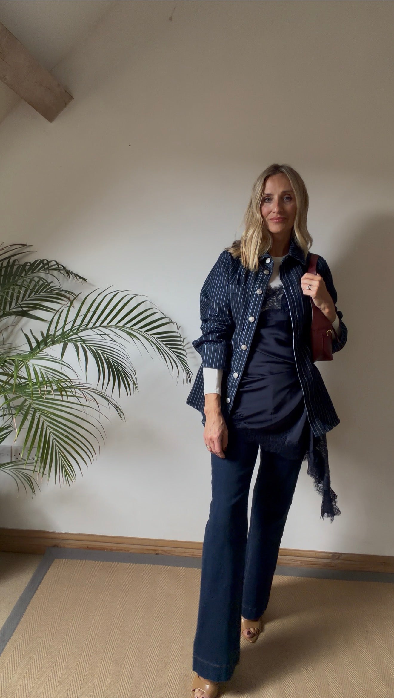 For a more dressy look drape an oversized blazer around the shoulders and team with heels.